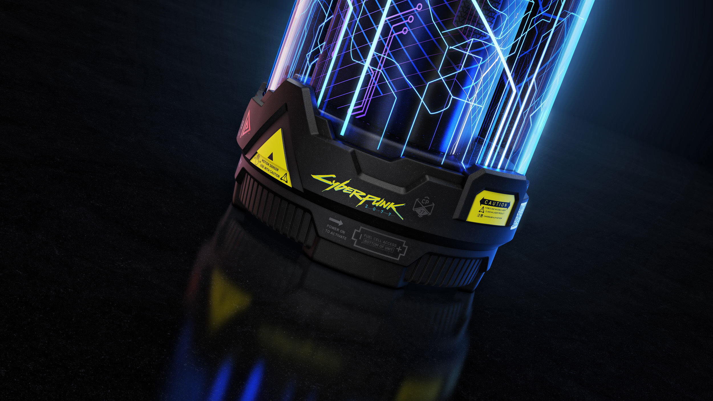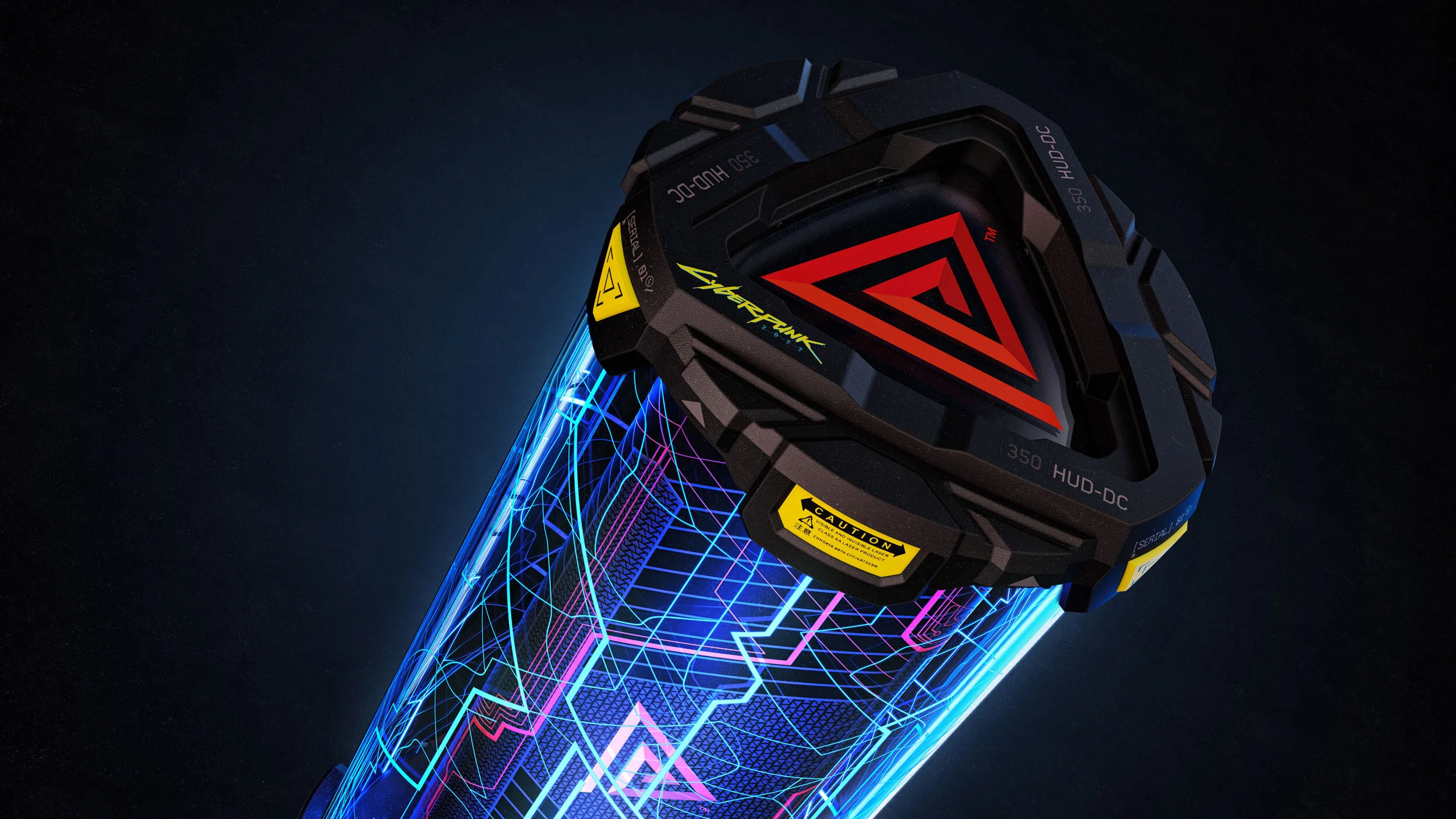 The light sequence is programmed to “glitch” and cycle between red and blue, the iconic colors of Cyberpunk and Doritos.